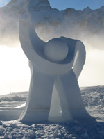 Wir stellen auch Skulpturen aus Eisblöcken her - als Dekoration von Buffets und Empfängen in Hotels und Restaurants, oder auch für einen speziellen Anlass in der Firma oder Zuhause. Die Eisfiguren (Tiere, Blumen, Ihr Firmenlogo etc.) sind das ganze Jahr erhältlich (bitte rechtzeitig vorbestellen). Geschnitzt werden die Skulpturen entweder in unserem Geschäft oder nach Wunsch auch direkt bei Ihnen vor Ort. Die Produktion von Schneeskulpturen durch uns persönlich oder unter unserer Anleitung als Teamevent Ihres Unternehmens beschränkt sich auf das Winterhalbjahr. Setzen Sie sich mit uns in Verbindung - wir beraten Sie gerne und senden Ihnen eine Preisliste mit allen Details. |