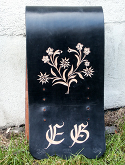 Lederne Treichelriemen oder Käselaibe beschnitzt: Beschnitzen und bemalen von Treichel- und Glockenriemen oder auch von Käselaiben... ein ideales Geschenk. Sie können den Riemen oder den Käse selbst mitbringen, oder wir organisieren ihn für Sie, zum Selbstkostenpreis! |